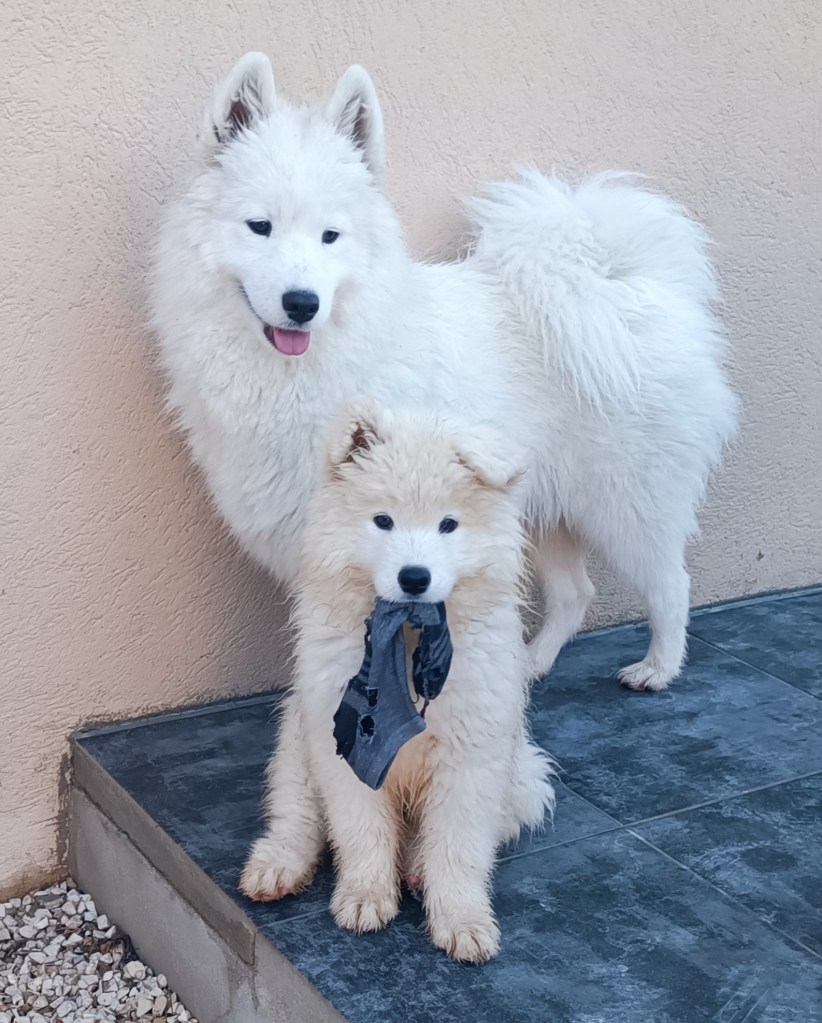 Le Samoyède est un chien fidèle et aimant aussi bien avec ses humains qu’avec ses congénères. Extrêmement proche de sa famille il ne refusera jamais un câlin ou une sieste auprès des siens.