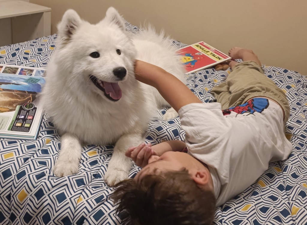 C’est un chien de traîneau qui a besoin de se dépenser au quotidien. C’est également un chien qui a tendance à s’exprimer en aboyant, d’où son surnom « la pintade des neiges ». Contrairement aux autres nordiques, les samoyèdes restent joueurs jusqu’à un âge avancé.